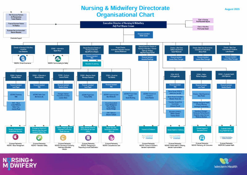 - Provides leadership and direction to Western Health’s nursing and midwifery workforce, supporting professional practice ensuring innovative research-based nursing and midwifery care to Western Health care recipients.